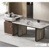- Bàn trà được trang bị hai ngăn gỗ và một hộc chứa đồ mở, giúp tối đa diện tích không gian sống