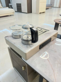 - Bàn trà được trang bị bếp đun nước và khay pha trà hiện đại