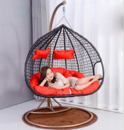 Khi mua xích đu quý khách sẽ được tặng bộ gối và đẹp màu đỏ tạo điểm nhấn thu hút khách hàng.